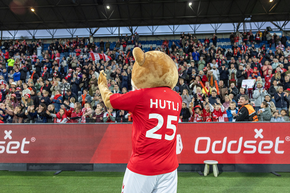 • Hutli rejser med landsholdene når de på udebane. Men allerbedst kan den lide at være på hjemmebane. Sammen med fansene. Sammen med dig.