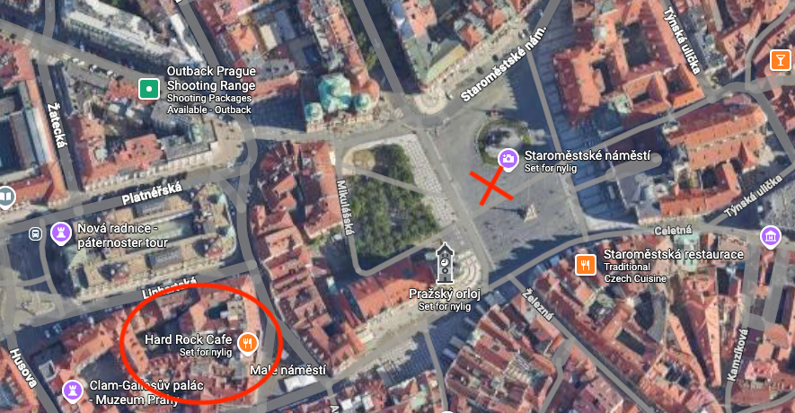 Hard Rock Café ligger i centrum af Prag - mellem Karlsbroen og det Astronomiske ur.